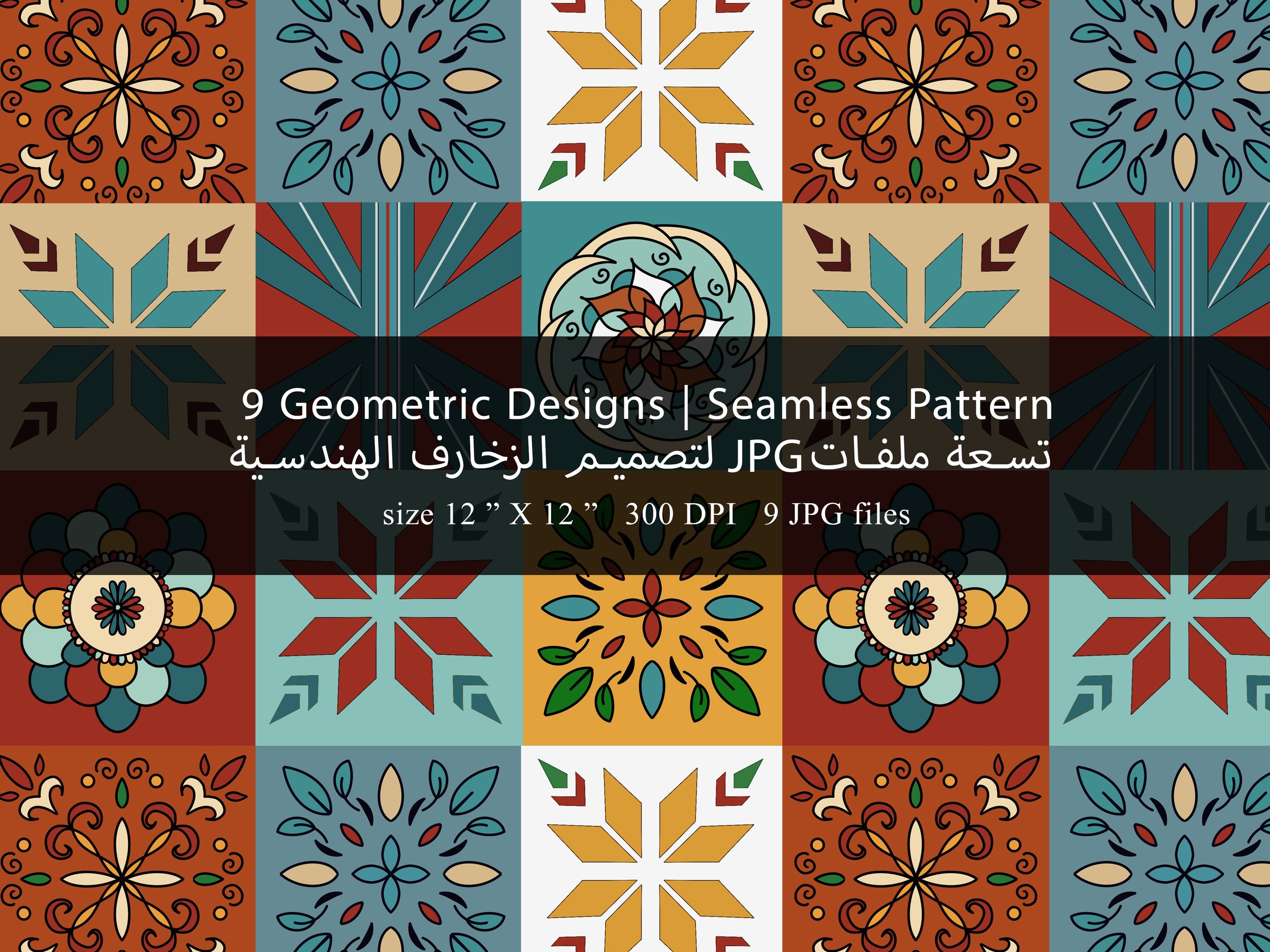 تصميم زخارف هندسية مميزه | تسعة ملفات | Geometric Digital Pattern Design | 9 JPG files